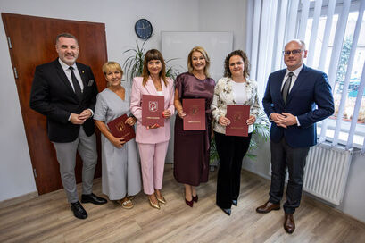 -Zawód, który Państwo wykonujecie - czy raczej powołanie - to praca na rzecz innych, zwłaszcza ludzi młodych. To nie tylko przekazywanie wiedzy, ale również kształtowanie postaw. Dzięki Państwa pasji młodzi ludzie mają możliwość odkrywania swoich talentów, zdobywania wiedzy i uczenia się wartości, które będą im towarzyszyć przez całe życie. Życzę, aby każdy dzień przynosił Państwu wiele satysfakcji, poczucia spełnienia i radości z efektów pracy. Dziękuję za Waszą pasję, poświęcenie i codzienne zaangażowanie - dziękowali dyrektorom burmistrz Przemysław Sikora i zastępca burmistrza Kamil Nieradka.